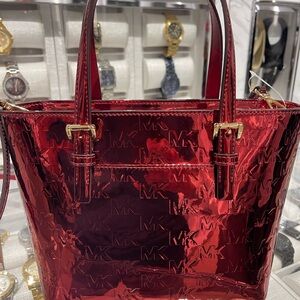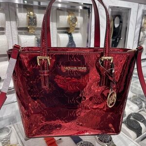 MICHAEL KORS Jet Set Extra-Small Metallic Logo Debossed Convertible TZ Tote Crossbody Mercer Bag