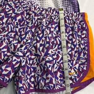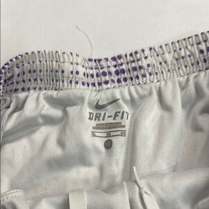 These Nike shorts feature a striking purple and white leopard-like print, perfect for adding a pop of color to your workout gear. Designed with a comfortable elastic waistband and contrasting side panels, they offer both style and functionality. Ideal for running or any athletic activity, these shorts ensure a comfortable fit with their lightweight and breathable fabric.