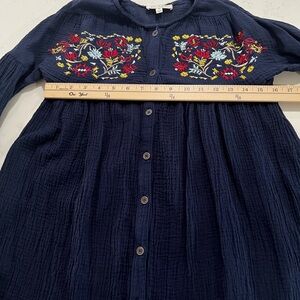 Dark Blue Textured Button-Up dresses