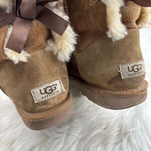 UGG Pull Up Bows boots with plush shearling lining. Elegant ribbon detail.