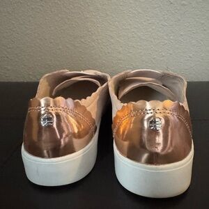 Step out in style with these chic pink leather slip on Cole Haan sneakers. Women’s sized 6. Perfect for casual outings, these shoes offer both comfort and elegance. Some scuffing noted on the rim. See images for details. Smoke free home