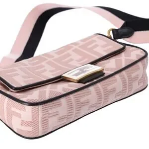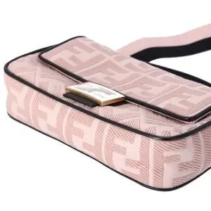 FENDI Mamma Baguette Zucca Pattern Handbag 8BR600 Pink Beige Black Jacquard