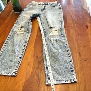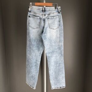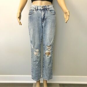 Celebrity Pink Wide Leg Denim Casual Slouchy Baggy High Rise Light Washed Jeans with Distressed Front.