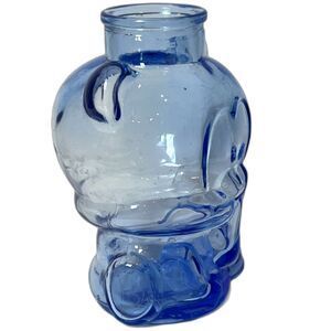 Vintage Morning Glory Blue Glass Bear Jar Vase Art Glass Bottle 76019 No Stopper