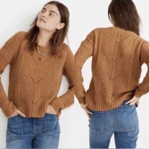 Embrace warmth and style with this Madewell sweater, featuring a classic crew neck and intricate rib transfer and pointelle stitch