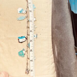 Each charm is thoughtfully arranged on a small stainless steel paperclip chain, making this bracelet both eye-catching and fun to wear. Finished off with a large lobster clasp. Offers a comfortable fit and charming movement on the wrist.