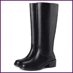 These classic knee-high boots combine timeless style with everyday comfort, making them a versatile addition to any wardrobe. The chunky block heel and square toe offer a modern look that's easy to wear.