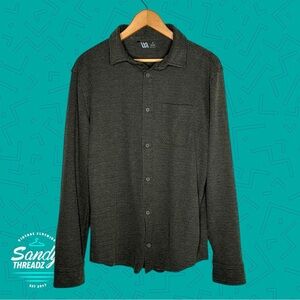 VRST Herringbone stretch knit long sleeve button down shirt. Size Men's Medium. Model is 5”9. Great condition and quality. No missing buttons. Green herringbone colorway, stretchy design, chest pocket, and button cuffs.