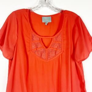 Skies Are Blue Anthroplogie Coral Orange Relaxed Fit Blouse Lace Womens Size Med