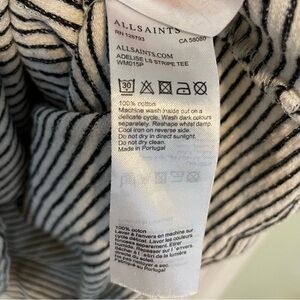 All Saints Adelise Black and White Striped Cotton Long Sleeve Top