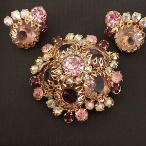 Juliana Delizza and Elster Pink D&E Pink RARE brooch and earrings set STUNNING