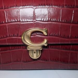 Elevate your style with the Coach burgundy croc-embossed leather bag. Perfect for any occasion, this elegant accessory adds a touch of sophistication to your ensemble.