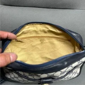 Chic Gucci crossbody with iconic pattern. Perfect for versatile styling. Luxurious and timeless design.