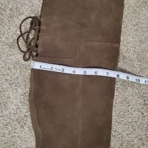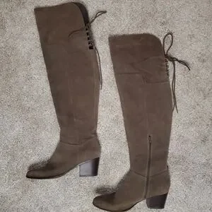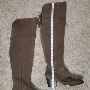 Elevate your wardrobe with these gorgeous Aldo brown suede over-the-knee boots! Crafted from genuine suede, these thigh-high boots feature a comfortable and sturdy block heel that's perfect for all-day wear. The chic lace-up detailing in the back adds a touch of bohemian flair and ensures a custom fit. These are in excellent pre-owned condition (EUC) and ready to become your new closet staple. A timeless and versatile piece that transitions effortlessly from fall to spring. Smoke-free home.