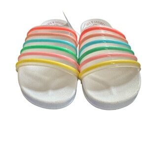 BNWT Disney Parks Little Mermaid Ariel Rainbow Striped Swim Slide Sandals Sz 2/3