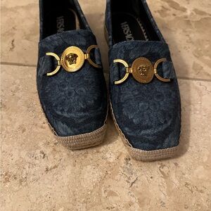 Versace Barocco Medusa '95 Blue Denim Espadrilles New