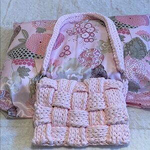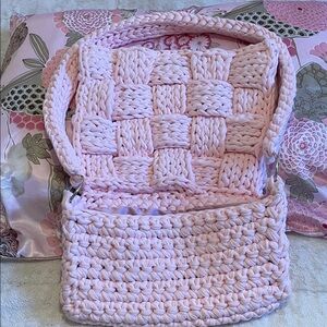🩰 Adorable handmade woven bag in a soft baby pink shade .
