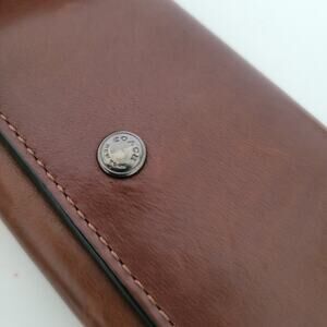 Coach Wallet Key Case Trifold Holder Solid Brown Geniue Smooth Leather Classic