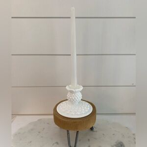 Fenton Hobnail White Milk Glass Single Taper Candlestick Candle Holder Vintage