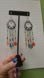 Bohemian style earrings with vibrant beads. Features red, blue, and orange beads and crystal in a silver tone setting. Ideal for a bold look.