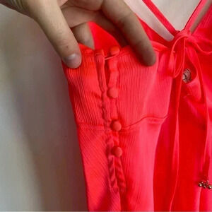 Free People Intimately Neon Pink Mini Slip Dress Adjustable Beaded Sleeveless