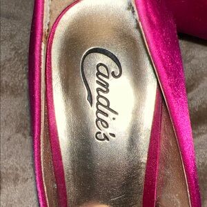 Candie's Fuchsia Satin Heels with Sparkling Gold Stiletto