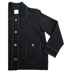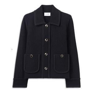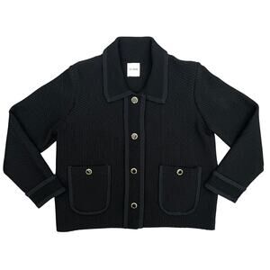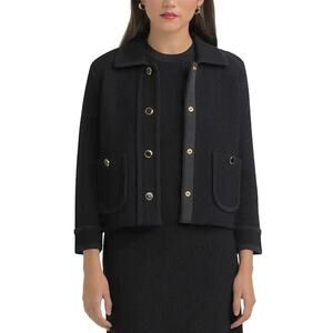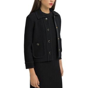 St. John Multiscale Textured Stretch Knit Collared Jacket Black XL Old Money