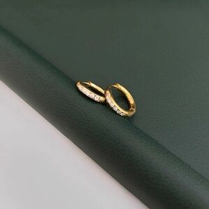 Elegant Gold Hoop Earrings, mini huggie hoops with cubic zirconia, mini hoops
