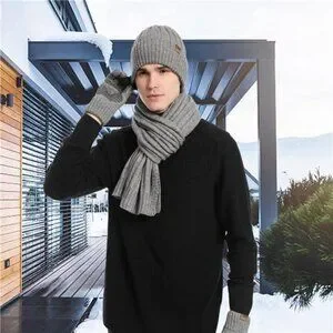 3pcs/Set Winter Beanie Hats Touchscreen Gloves Neck Warmer Scarf Set for Men