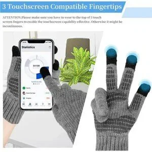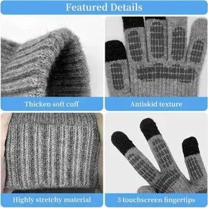 *BLACK AND GREY 3 Pieces Mens Winter Beanie Hats Scarf Touch Screen Gloves Warm Thick Fleece Knit Set.Perfect for Outdoor Activities in Ccold Weather.