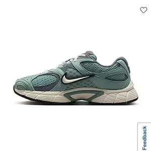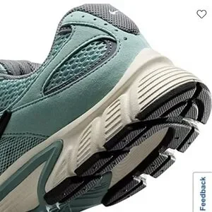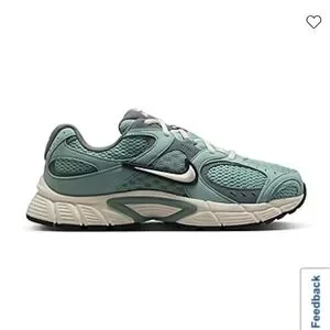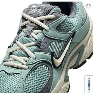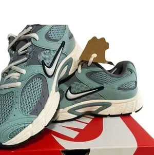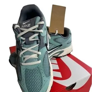 Nike running shoes in green, ivory with grey. Sleek design for active lifestyle.