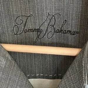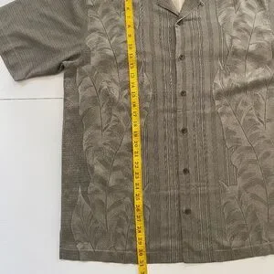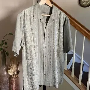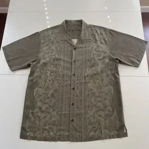 TOMMY BAHAMA Palm Tree Hawaiian Silk Button Up Green Khaki Shirt. Size L