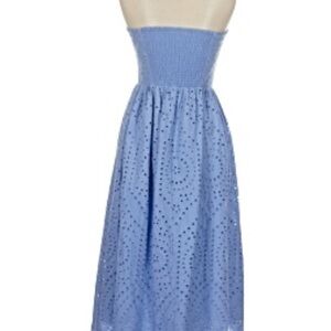 H&M Strapless Babydoll Midi Eyelet Dress in Soft Blue NWT S