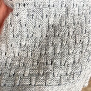 Gorgeous lacy pointelle open wrap or cardigan. Neckline is shawl or waterfall. Like brand new just dry cleaned. Oversized on a 2-3X mannequin. Soft and lightweight. Pretty true light blue. Linen/ rayon blend. Evening to office. Fashion and function. No flaws or signs of wear. Pit to pit loosely 25” shoulder to hem descending length 25-32”.