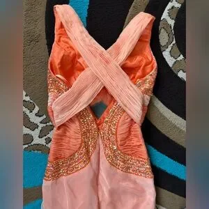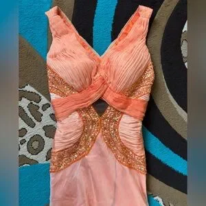 Purchased from a seller on a different platform but was too small sadly. See pics for signs of wear- loose/missing beading a few small stains and slight fraying on the inside slip at the hem (assuming from shoes worn while walking/dancing). I tried my best to look over and find additional signs of wear but since I was unable to fit details may be missed. I did not attempt to remove stains or fix the beading. I find the mentioned & pictured imperfections not particularly noticeable especially if you’ll be wearing to a festive event that involves dinner or dancing and drinks which will inevitably lead to more loose beads and a couple more stains haha 💃✨🪩