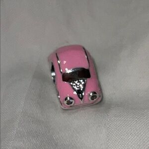 Cute pink car charm with silver accents. Perfect for bracelets or necklaces.