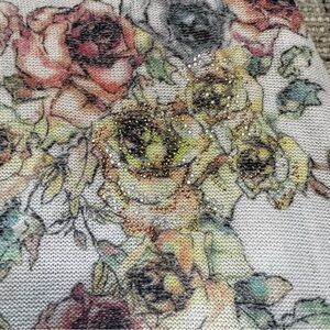 Please note: has some pulls but no holes. There are no rips, tears or stains on this piece. Flowy, lightweight, mesh-like but not fully see through material.