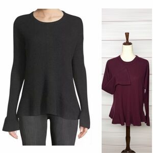 Lord & Taylor Burgundy Cashmere Sweater Ruffle Hem and Cuffs Crew Neck size S