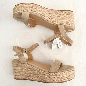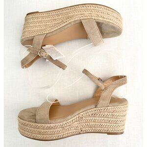 Banana Republic Platform Espadrille Sandals Size 8 Bone Faux Suede Resortwear