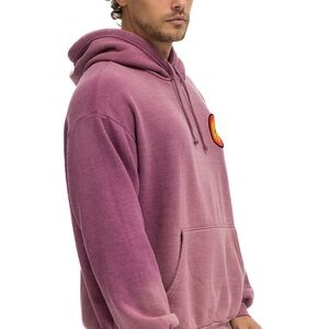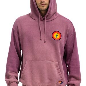 AVIATOR NATION $189 BOLT BULLSEYE PATCH PULLOVER RELAXED HOODIE - FADED BERRY