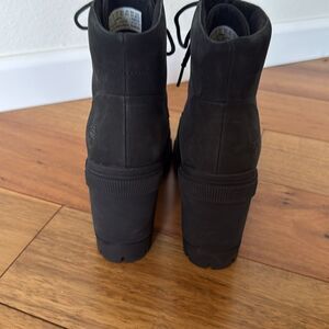 Only worn a couple of times. Leather upper with rubber soles. Heel height is 4”.