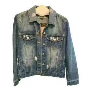 Keywords: Ashley Vintage Charm,denim jacket, women's jacket, floral pattern, blue jacket, casual wear, long sleeve, button closure, regular fit, machine washable, pre-owned, stylish jacket, basic jacket, women's fashion, casual occasions.