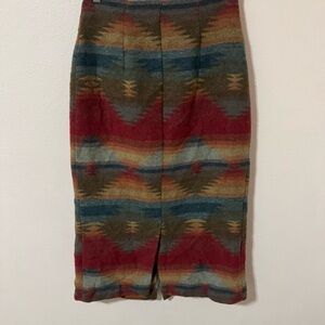 EUC Vintage Express Jeans Wool Southwestern Tapestry Wrap Midi Skirt Red Green