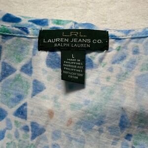 Lauren Ralph Lauren Ruffle Tank Top Floral Sleeveless Geometric Blue Orange Sz L