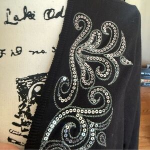 Bob Mackie Black Sequin Open Front Cardigan – 2X – NWT
