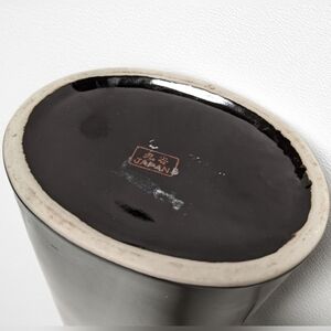 Vtg Japanese black ceramic vase with painted flowers gold plated rims.
