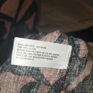 The product is a sleeveless linen rayon dress by A New Day in size medium. It features a round neck, pullover closure, and is designed for casual occasions. The black and brown color combination, along with the short length and shift/sundress style, make it perfect for summer, fall, and spring seasons. Made from a blend of linen and rayon, this dress offers a comfortable and stylish option for women looking for a versatile and fashionable piece for their wardrobe.