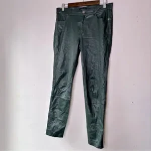 Lafayette 148 New York Spruce Green Mercer Skinny Leg Leather Pants Size 8