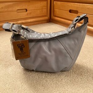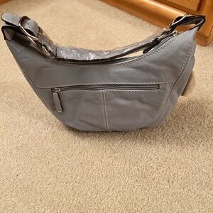 NWT. This stylish light blue leather shoulder bag is perfect for any occasion. Its sleek design and high-quality material make it a must-have accessory. Ideal for adding a touch of elegance to your outfit. Outside zipper pocket and comes with a keychain. Adjustable straps.
