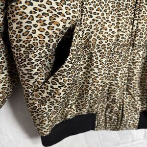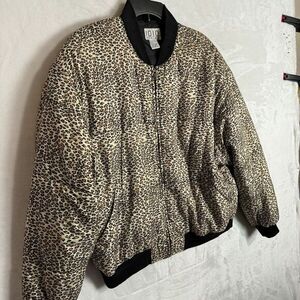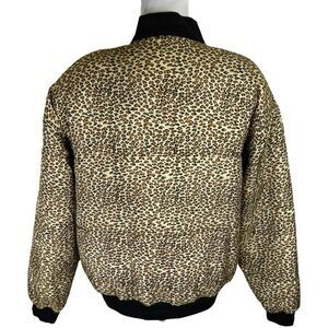 80s 1010 Leopard Print Silk Puffer Bomber Jacket Size Large Quilted 90s Vintage